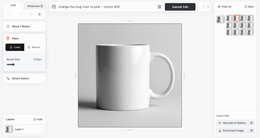 → 상단에 프롬프트 입력 후 Submit Edit 버튼 클릭 → 수정 완료!